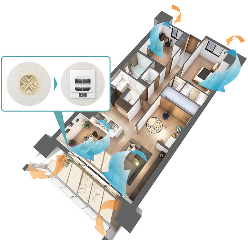 KKR100の快適換気リフォームは気密性の高いマンションでも清潔な空気に保つ換気が十分に行えます。