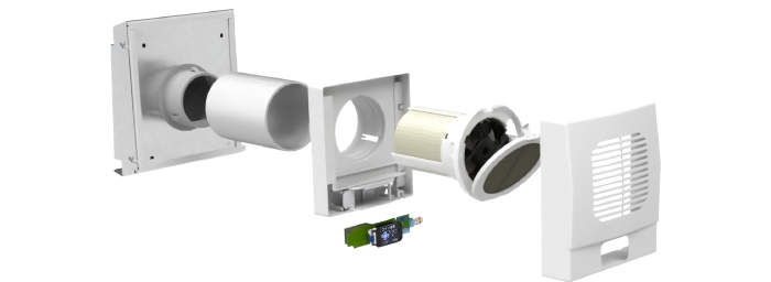 KKR100のCO2センサーモジュール(別売オプション)は、室内空気のCO2濃度を検知し、ファンユニットの風量を自動調整します。