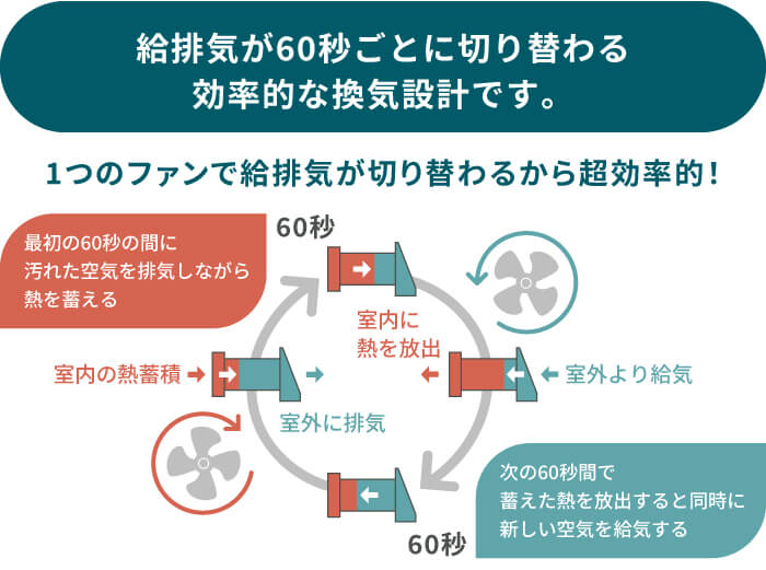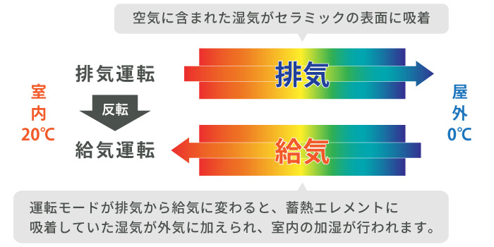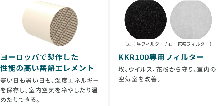 独自の蓄熱エレメントにより給排気時の温度をコントロール。