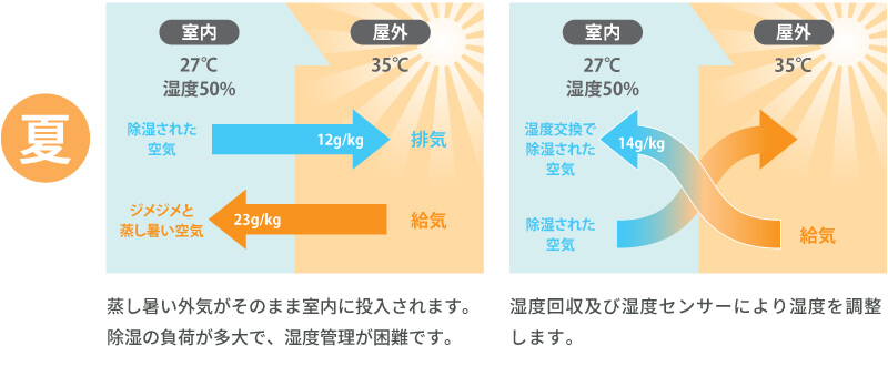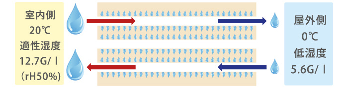 反転の直後は湿気の吸着能力が高いですが、しばらく時間がたつと湿気の吸着能力が軽減します。その特性を利用して反転時間の変更により住宅内の湿度を調整することができます。