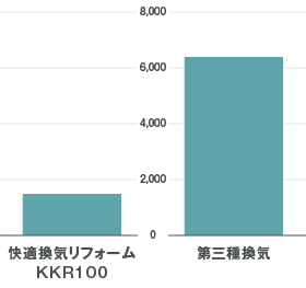 せっかく冷暖房費が節約できても快適換気リフォーム 「KKR100」を動かすための電気代がかかりすぎては意味がありません。