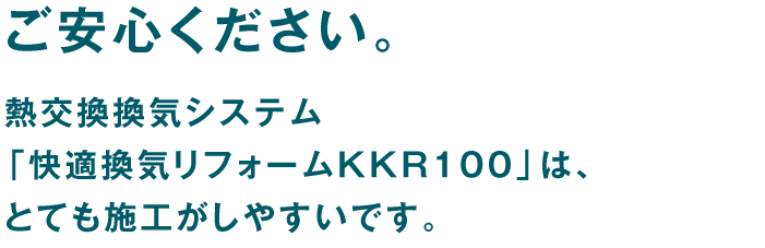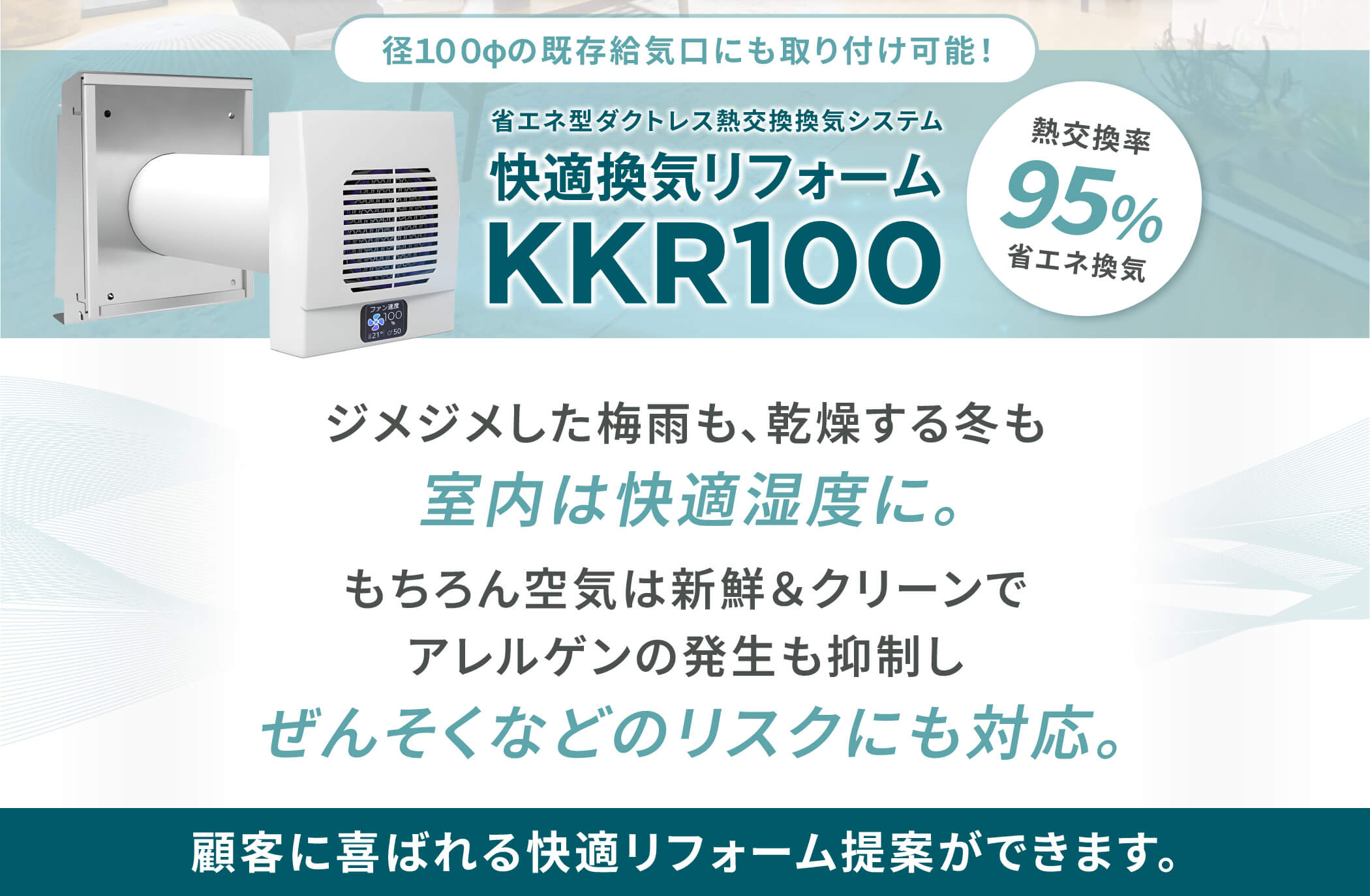 ぜひ、お客様へのリフォーム提案時に「快適換気リフォーム KKR100」を加えていただき、より健康的な室内環境を実現していただけたらと願っております。